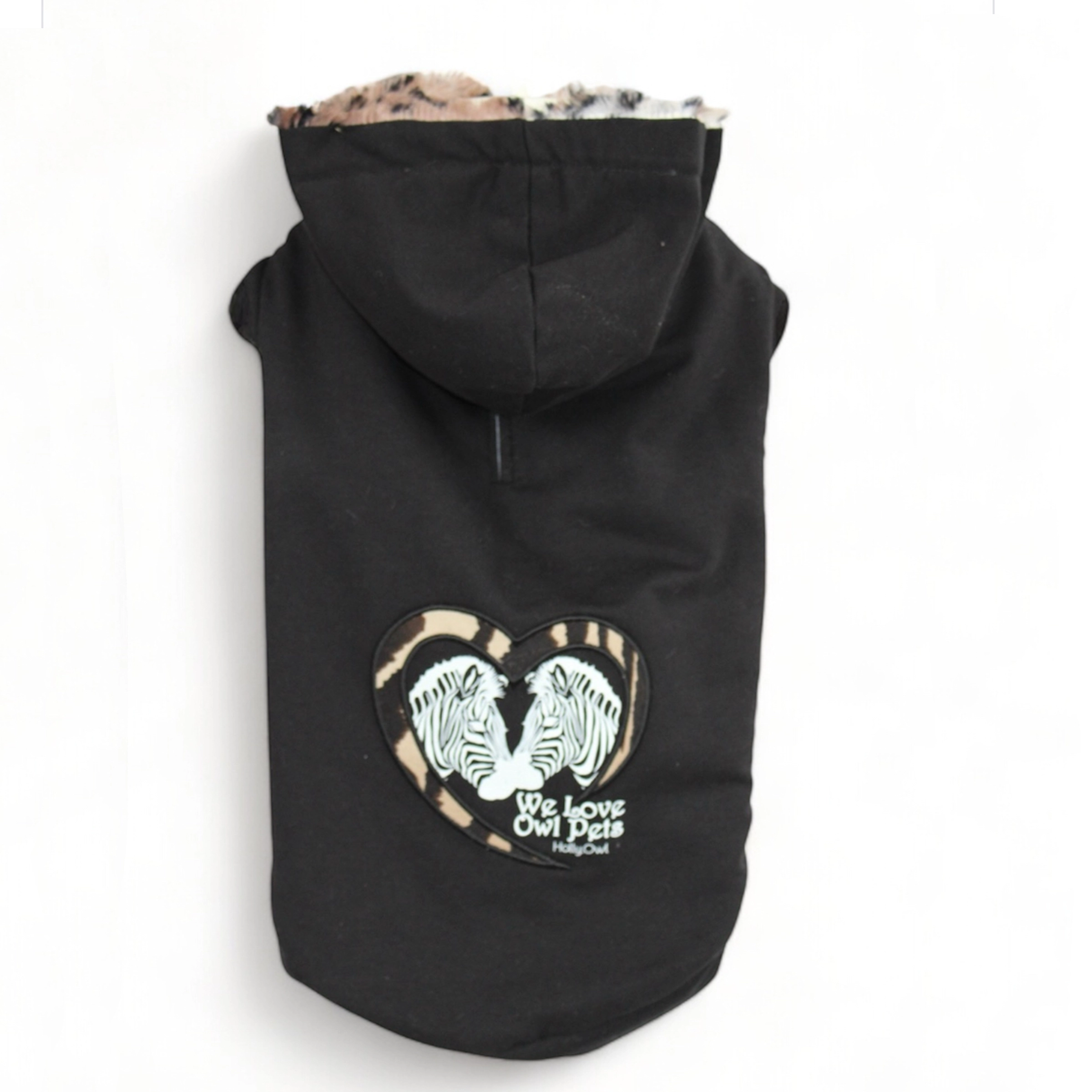 Sulla schiena una stampa zebrata, elegantemente bordata da un’applicazione a forma di cuore in tessuto animalier, aggiunge un tocco originale e raffinato. Veramente una chicca! Mentre l’interno del cappuccio e la fodera sono in con eco-pelliccia morbidissima in stile wild-jaguar. Un dettaglio che dona al capo un look unico, che unisce stile, carattere ed eleganza. Sicuramente perfetta per chi non rinuncia mai allo stile e alla moda!