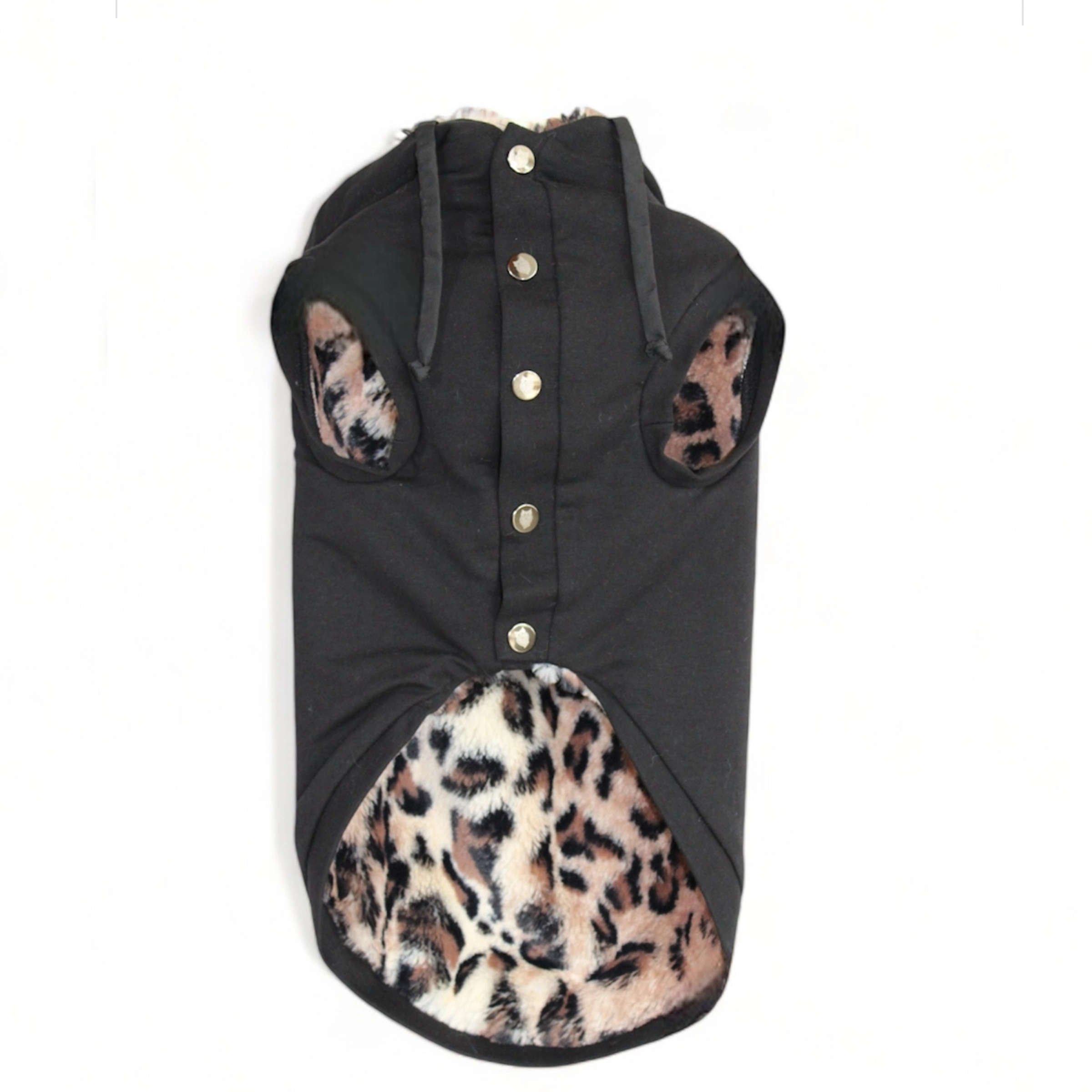 La chiusura frontale con doppia fila di bottoni a pressione rende questo articolo facile da indossare e comodo da togliere. Inoltre, una piccola asola sulla schiena permette di agganciare più comodamente il guinzaglio, aggiungendo una funzionalità pratica per le passeggiate quotidiane.