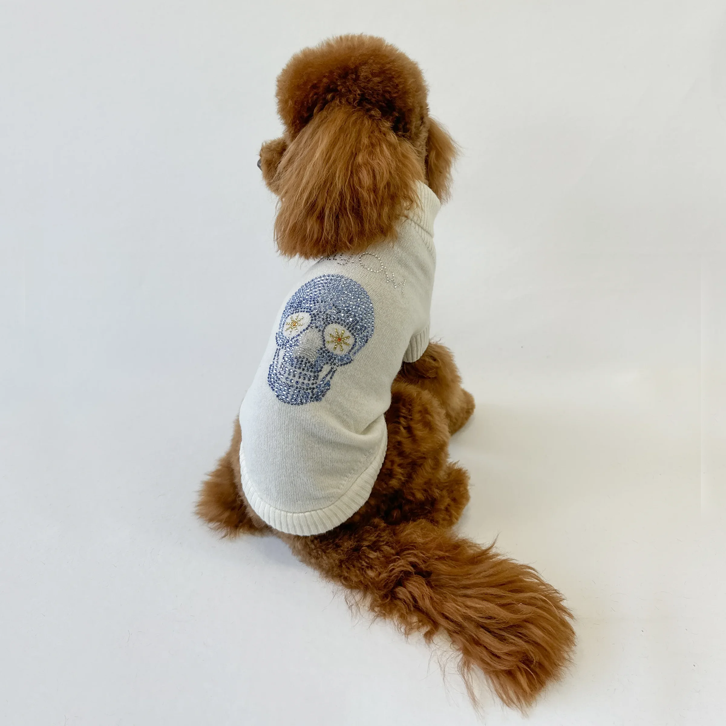 Eleganza e comfort in un dogwear di lussoRaffinato maglione per cani, realizzato in 100% puro cashmere. Perfetto per chi cerca lusso e stile grazie all’originale teschietto in strass sulla schiena. Inoltre, grazie alla straordinaria morbidezza e leggerezza, risulta ideale per le razze di piccola taglia.