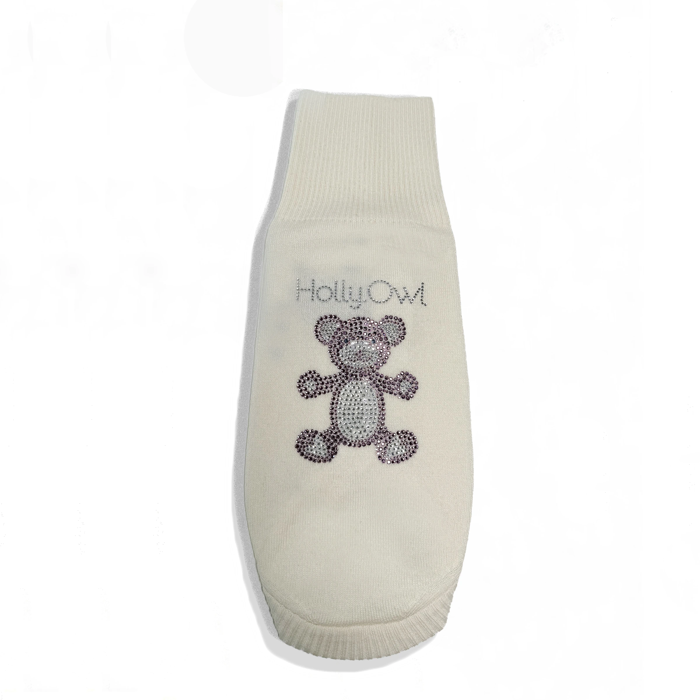 Splendido maglioncino per cani piccoli in puro cashmere. É arricchito da un adorabile orsetto luccicante in strass sulla schiena che dona un tocco di charme irresistibile. Morbido come una nuvola e leggerissimo. Avvolge il tuo cagnolino in un comfort totale.